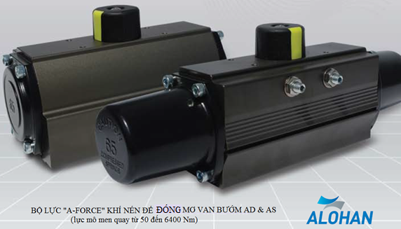 Có các mã cơ cấu khí nén đóng mở van bướm AD kép và AS đơn v ới các góc đóng mở 0˚;45˚và 90˚±5˚ và với các cỡ van theo tiêu chuẩn từ 50 đến 250 với các góc mở và mô men tải được theo bản kê theo link:www.alohan.com