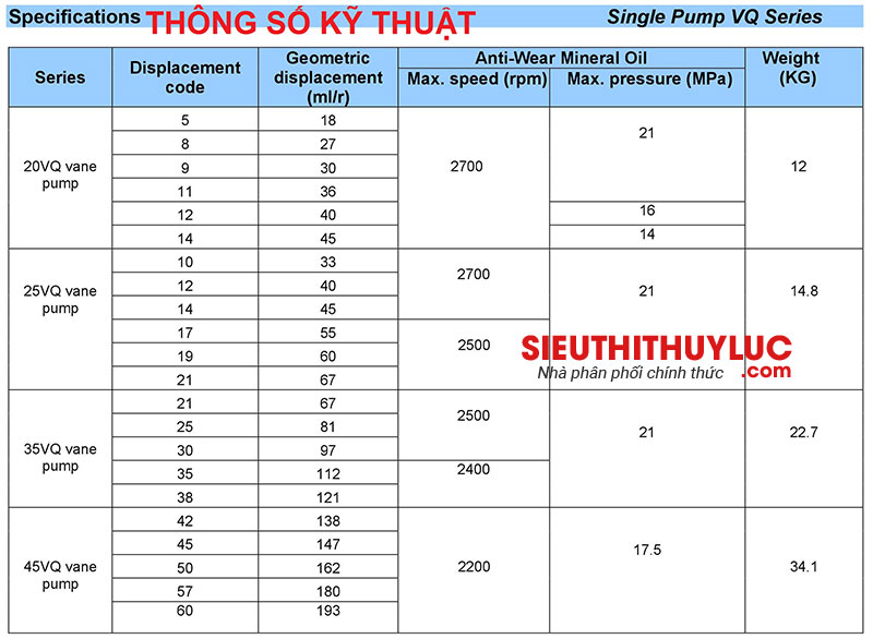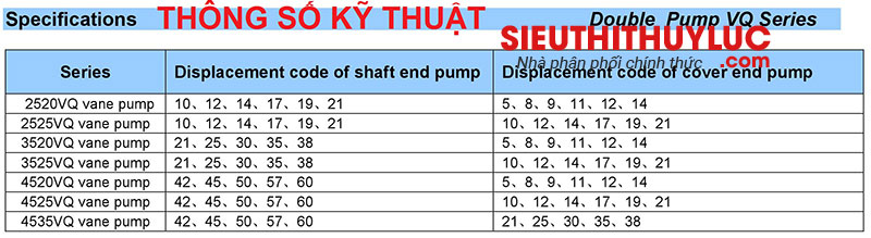 3.MÃ ĐẶT HÀNG: 2520V Q-21A8-1CB, 3520VQ-21A05-1CB, 3525VQ-38A21-1CB, 4525VQ-50A21-1CB, 4535VQ-60A38-1CB