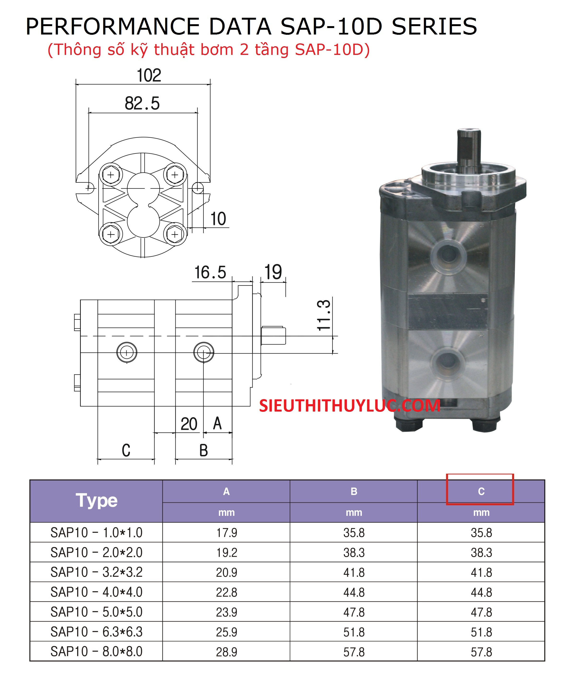Bơm bánh răng vỏ nhôm SAP-10C là loại bơm được thiết kế chuyên dùng cho đường điều khiển của các loại máy công trình: máy xúc lật, máy cẩu…