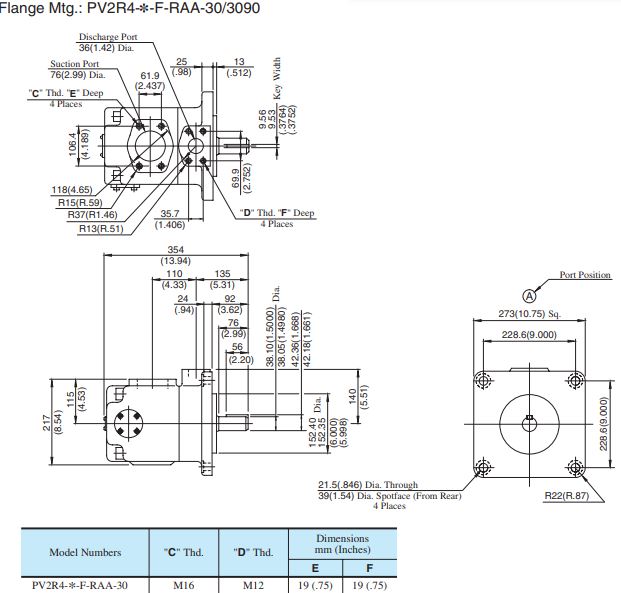 Kích thước lắp đặt Bơm Yuken PV2R4- 136/153/184/200/237