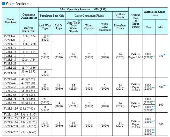 Thông số kĩ thuật Bơm Yuken PV2R4- 136/153/184/200/237