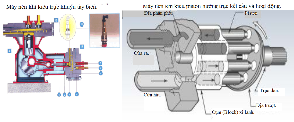 Đây là các hình ảnh mô tả kết cấu máy nén khi kiểu piston và nguyên lý hoạt động của chúng.