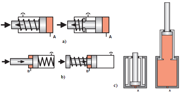 - Loại đẩy với lò xo trong khoang xy lanh và khoang xy lanh.
