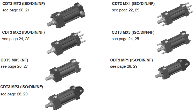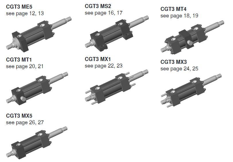 Xi lanh cần hai phía kiểu CGT3;các kiêu lắp (Áp suất làm việc định mức max 210 bar)