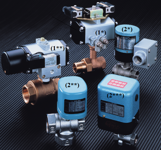 Sau đây là hình ảnh các loại van được đống mở bằng khí nén kép (1*) và đóng mở khí nén đơn (1**) và đóng mở bằng điện (2*);(2**) và (2***)