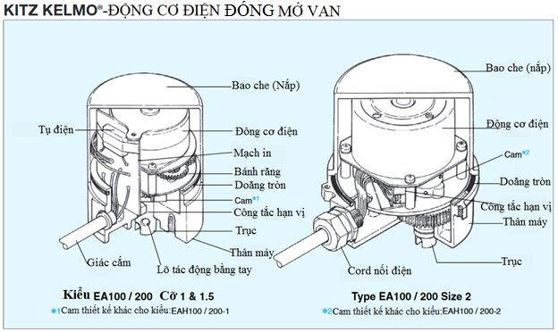 Cac bộ đóng mở van với điện áp 12/24 VDC hoặc 110/220VAC được sử dụng và ký hiệu như bảng sau: