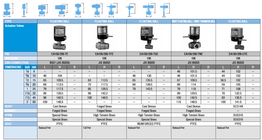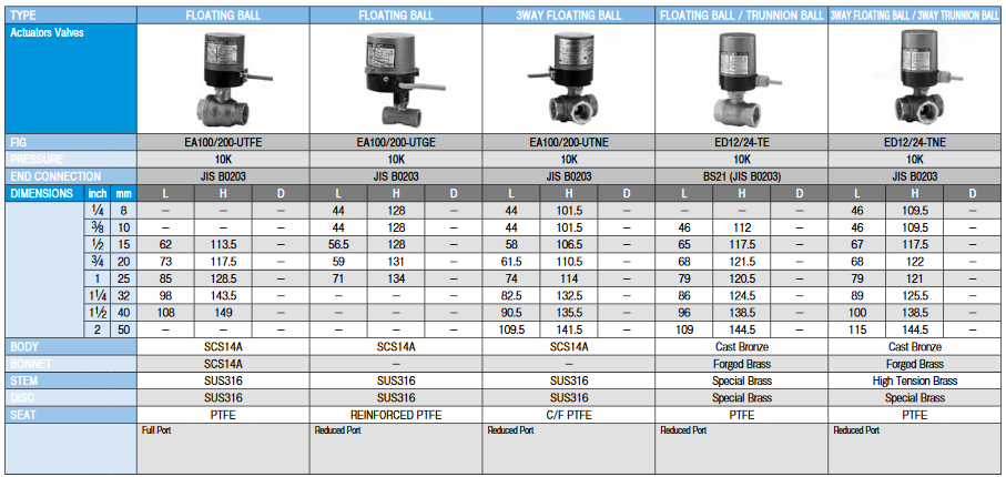 Van bi cầu đóng mở bằng điện thường có các van 2 ngả hoặc 3 ngả có các cỡ kích thước từ DN8 đến DN50 với áp suất làm việc max 10 bar.