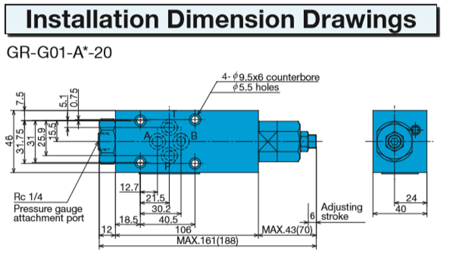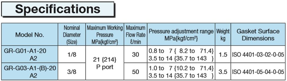 điều chỉnh áp suất bằng một vít đơn (bu lông). Van nhỏ gọn và nhẹ có thể được gắn bằng các phương pháp tương tự như van điện từ kích thước 01, 03.
