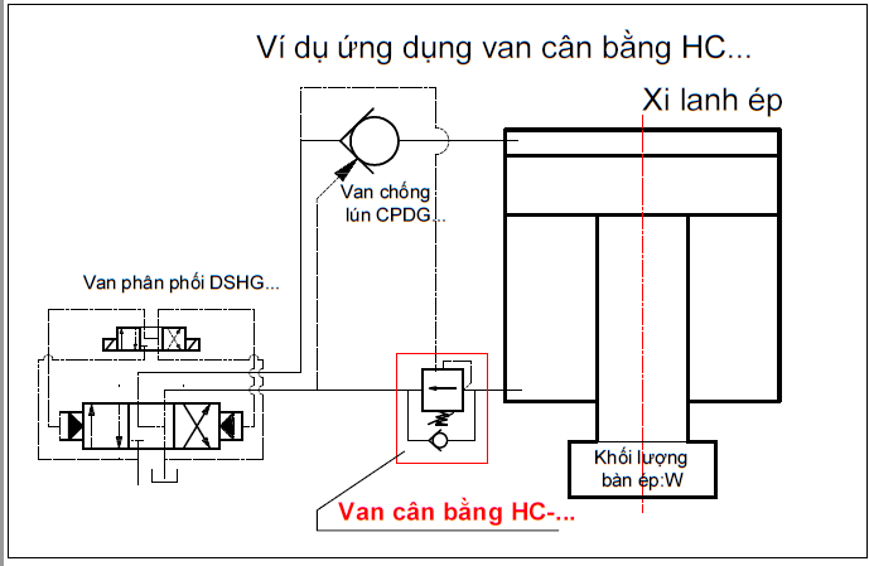 Sơ đồ ví dụ ứng dụng van cân bằng thủy lực