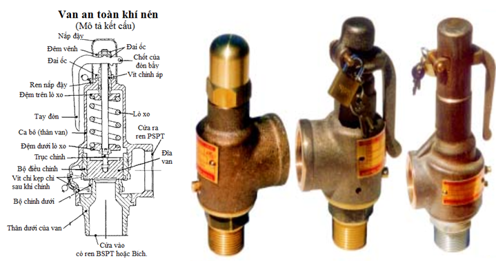 Van an toàn là van dùng để chỉnh áp suất nguồn bảo vệ máy nén khí trong giới hạn áp suất định mức cho phép của máy.