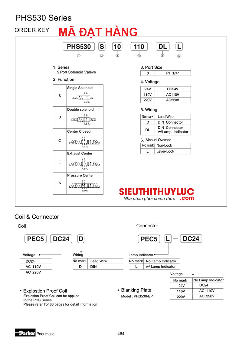 3.MÃ ĐẶT HÀNG: PHS530S-08, PHS530D-08, PHS530C-08, PHS530E-08, PHS530P-08.