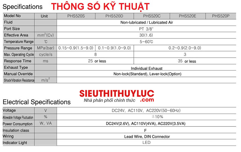 Van điện từ khí nén Parker PHS530 Series: là một dòng van đa năng được sản xuất từ vật liệu chất lượng cao với các ứng dụng công nghiệp trong môi trường khắc nghiệt. Mang nhiều ưu điểm bao gồm tính năng tiêu thụ điện năng thấp, tỷ lệ dòng chảy cao, thời gian phản ứng nhanh chóngcung cấp dung lượng lưu lượng lớn với kích thước nhỏ gọn và thiết kế thẩm mỹ. Dòng sản phẩm PHS được sử dụng rộng rãi trong ngành công nghiệp ô tô, bao bì, máy móc đặc biệt và máy công cụ.